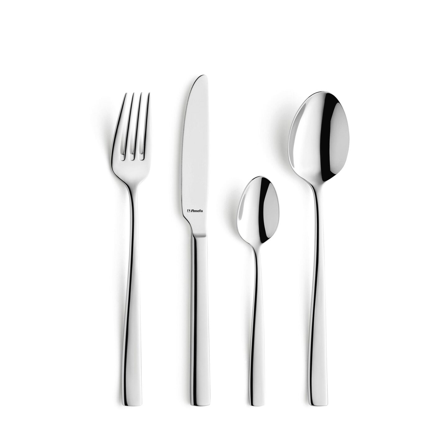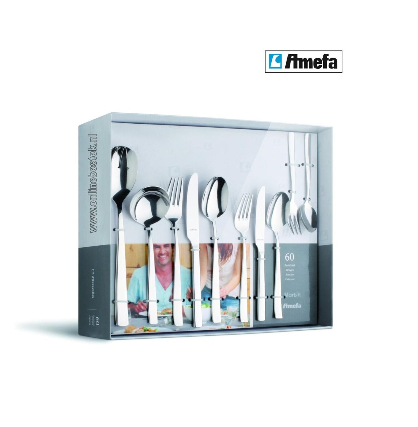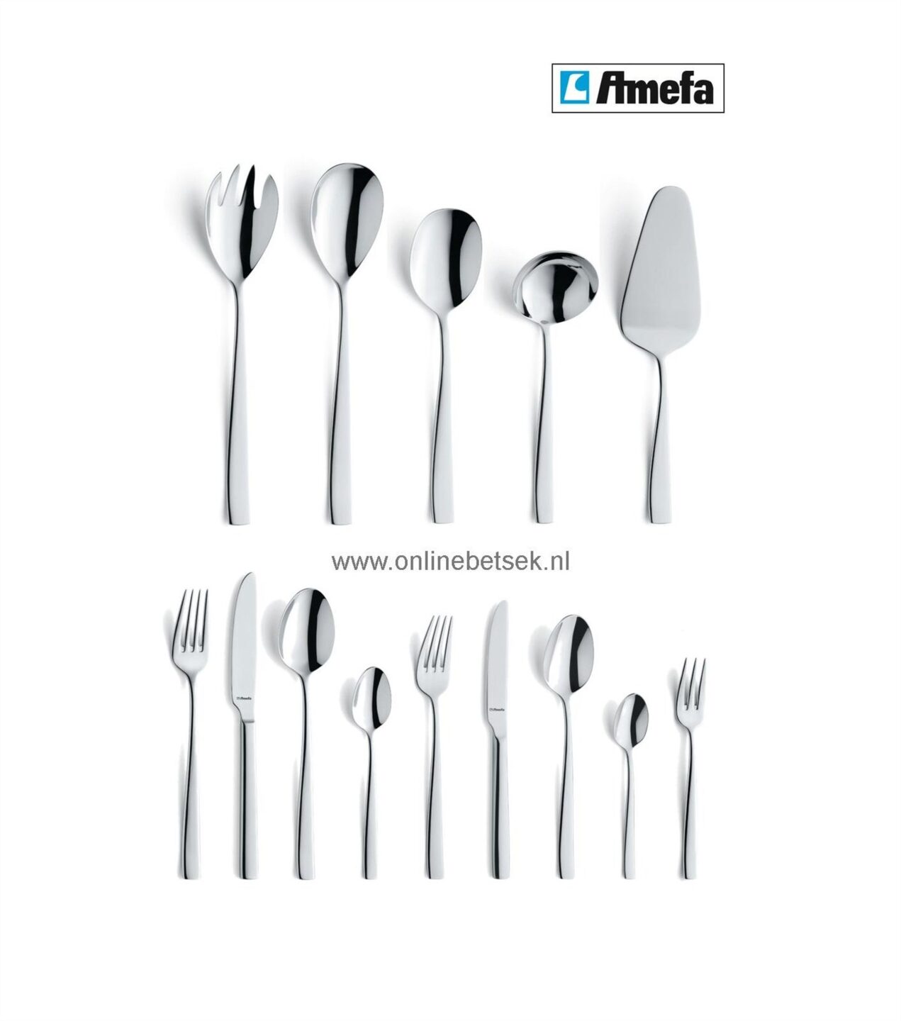 De Amefa Martin bestek set is een 120-delige bestekcassette voor 12 personen uit het Amefa home assortiment. De exclusieve design bestekcollectie van Amefa waarin kwaliteit en design gecombineerd worden met elegant en functioneel. Het Amefa Martin model oogt strak en stijlvol vanwege het gladde design zonder verdere versieringen. Ideaal voor de moderne tafelsetting. Dit Amefa Matin bestek is gemaakt van 3,0 mm dik RVS 18/10 hoogglans gepolijst edelstaal. Dit bestek set is duurzaam, onderhoudsarm en vaatwasmachinebestendig en wordt geleverd in een mooie cadeau verpakking.
