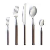 Ieder bestekdeel wordt handmatig gelast en afgewerkt tot in het kleinste detail. Puur vakwerk. Hierdoor is ook ieder bestekdeel uniek en absoluut geen massaproduct. Het gepolijste stalen heft krijgt de mooie gebrande kleur wanneer deze in de oven op hoge temperatuur wordt gebracht. Het bovenste deel van het Forged bestek is gemaakt van gesmeed staal en heeft een mat satijnen afwerking. De gelaste overgang van het lemmet naar het heft maakt dit Forged industriële bestekontwerp helemaal af.