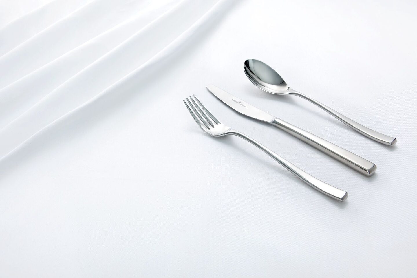 De Branding is een prachtige, moderne bestekserie uit de Keltum collectie. De uitgesproken lijnen van dit bestek staan symbool voor de ruige Nederlandse kust. Het bestek is stijlvol afgewerkt met afgeronde hoeken en licht afgeschuinde heften en stelen.