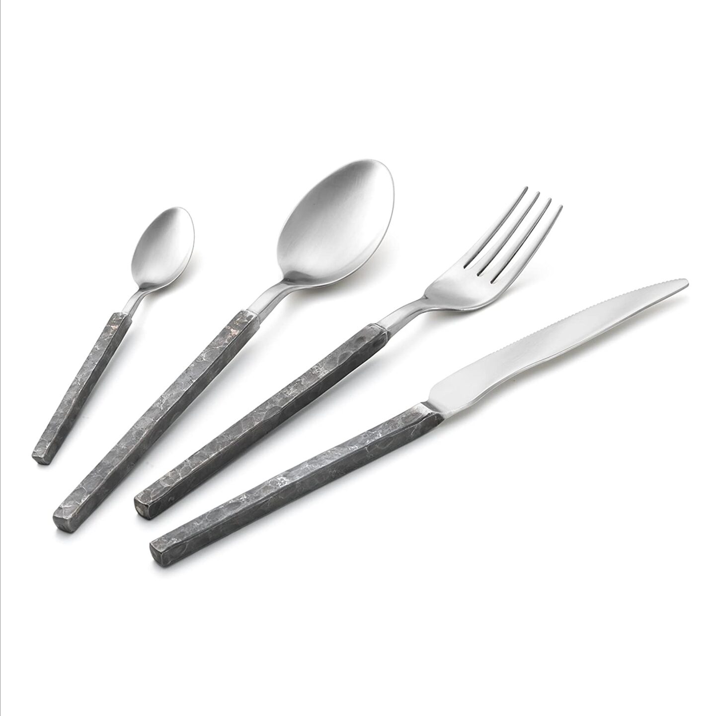 Dit stoere vierkante Forgia Industrial bestek in ontworpen door het Italiaanse SR-design. Het 64-delig bestekset is geschikt voor een tafel van 12-personen. Robuust, functioneel en gesmeed dit zijn de woorden die deze bestekserie kenmerken. Forgia Industrial is geïnspireerd op een puur design, gemaakt van 8 mm dik gesmeed 18/10 edelstaal en er zijn ook losse bestekdelen verkrijgbaar. Combineer dit bestek met de minimalistische Aida RAW borden en de industriële stijl is direct op tafel aanwezig. Het bestek is gehamerd en doorleefd ontworpen, waardoor elk item een uniek bestek-stuk is! Het gehamerde en mat geparelde handvat doet denken aan het handwerk van een smid, die de gloeiende sintels vormt met zijn hamer totdat zijn meesterschap de unieke vorm creëert.