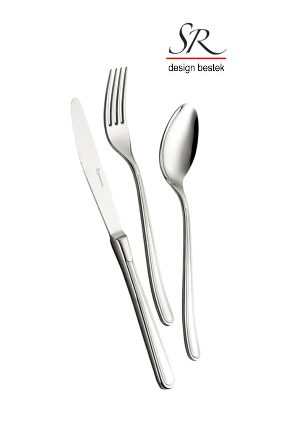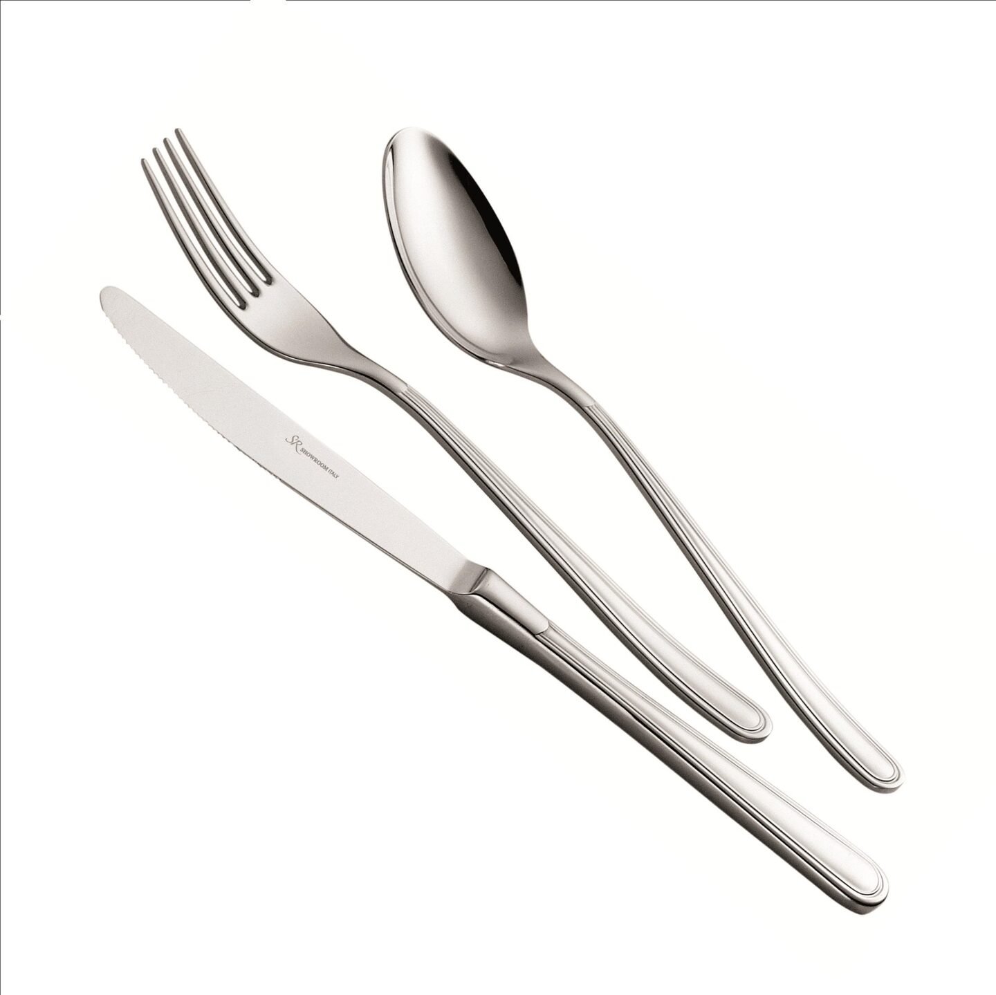 Dit romantische SR-design Roma bestekset is een 88-delige bestektset geschikt voor een tafel van 12 personen. De exclusieve Italiaanse design bestekcollectie SR waarin kwaliteit en design gecombineerd worden met elegant en functioneel. Het Roma bestek straalt met zijn dubbele sierlijke lijnen op het heft en glanzende afwerking klasse en stijl uit. Het bestek gemaakt van 3 mm dik RVS 18/10 hoogglans gepolijst edelstaal en mag gereinigd worden in de vaatwasmachine, SR-design geeft op dit bestek 10 jaar garantie.