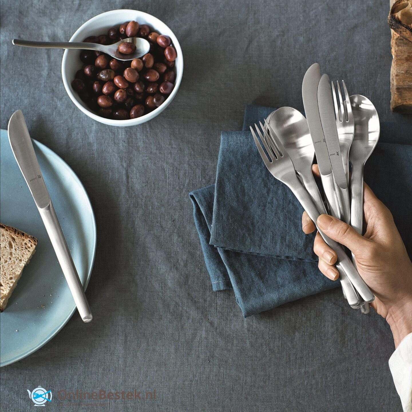 Het ontwerp van dit WMF Evoque bestek is een expressie van een authentieke levensstijl en een duurzaam moment op de dag waar men elkaar aan tafel weer ontmoet. De combinatie van de koele elegantie en zachte vormgeving belichaamt de harmonieuze perfectie. Evenwichtig en op hetzelfde moment organische vormen zorgen er voor dat de Evoque de juiste proporties heeft en een buitengewoon goed aanvoelt. De WMF Evoque protect bestekserie is vaatwasmachine bestendig en gemaakt van krasbestendig chromargan protect staal.