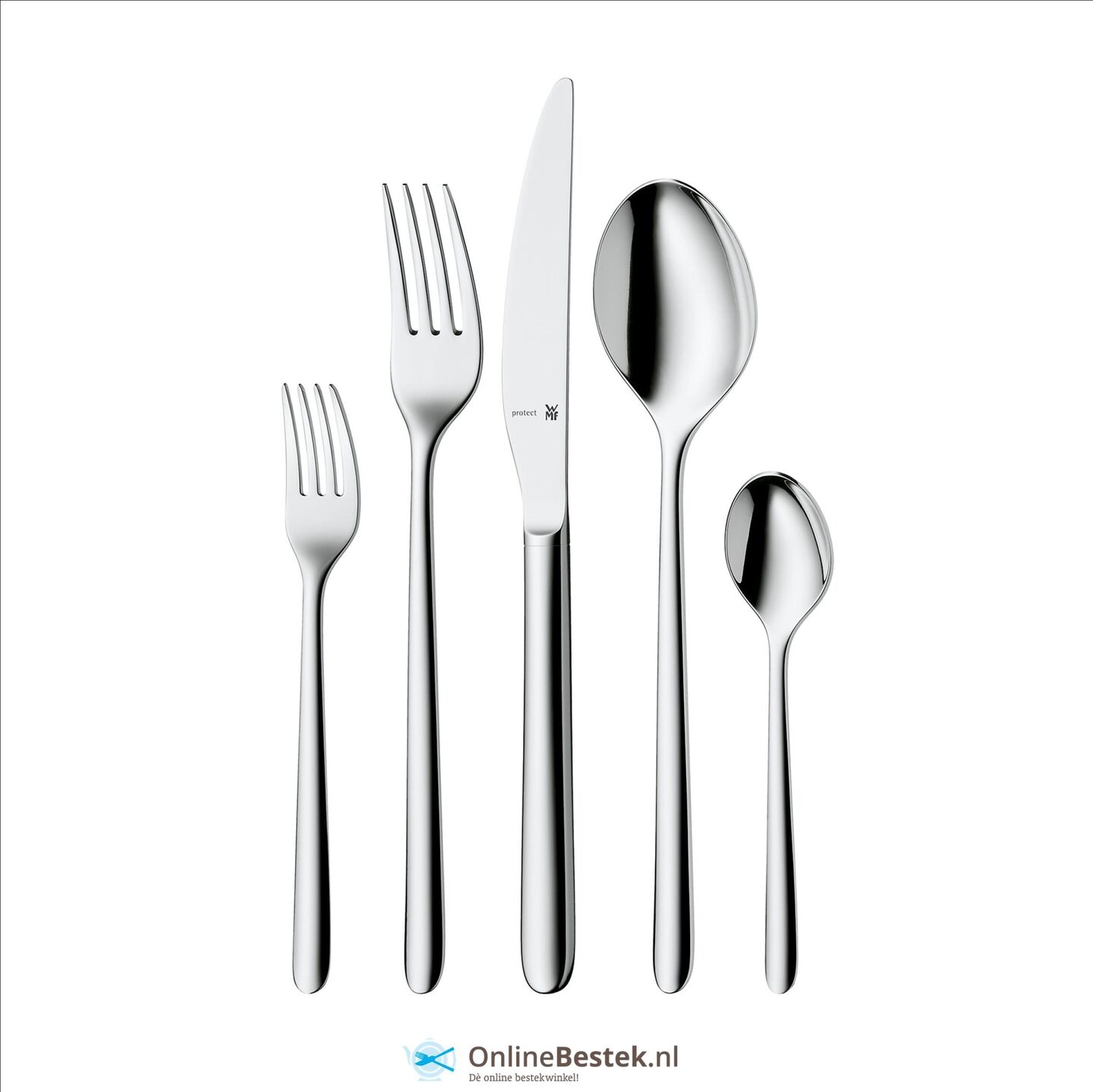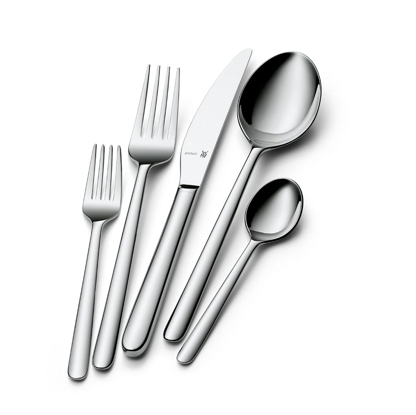 Cromargan protect® – een schitterende innovatie, internationaal gepatenteerd en alleen van WMF. Bij normale bestekken waren er bij het testen al na een paar testruns duidelijke sporen en diepe krassen te zien. Het oppervlak van bestekken van Cromargan protect® bleef echter ook bij lange test runs bijna onberispelijk. De voordelen van Cromargan protect: Krasbestendig - extreem bestand tegen alle soorten gebruikssporen - gepolijste oppervlakken blijven glanzen, matte oppervlakken blijven mat - roestvrij en geschikt voor de vaatwasmachine - internationaal gepatenteerd, alleen bij WMF - alle eigenschappen van het mooie WMF Flame Cromargan protect® gegarandeerd.