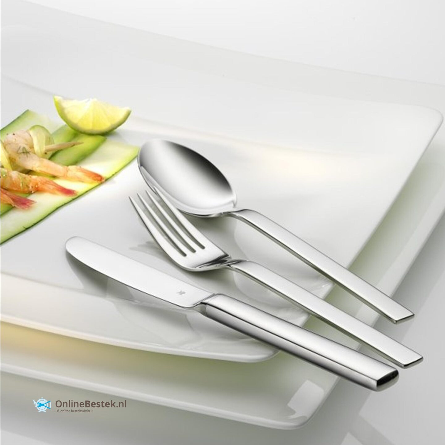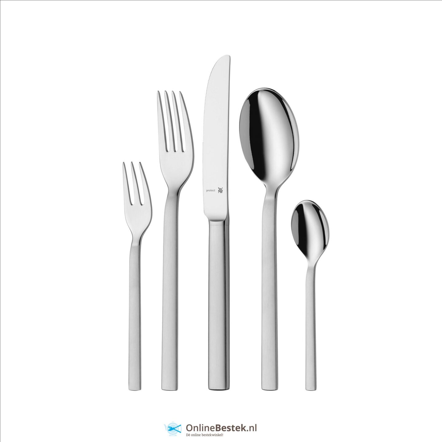 Cromargan protect® – een schitterende innovatie, internationaal gepatenteerd en alleen van WMF. Bij normale bestekken waren er bij het testen al na een paar testruns duidelijke sporen en diepe krassen te zien. Het oppervlak van bestekken van Cromargan protect® bleef echter ook bij lange test runs bijna onberispelijk. De voordelen van Cromargan protect: Krasbestendig - extreem bestand tegen alle soorten gebruikssporen - gepolijste oppervlakken blijven glanzen, matte oppervlakken blijven mat - roestvrij en geschikt voor de vaatwasmachine - internationaal gepatenteerd, alleen bij WMF - alle eigenschappen van het mooie WMF Lyric Cromargan protect® gegarandeerd.