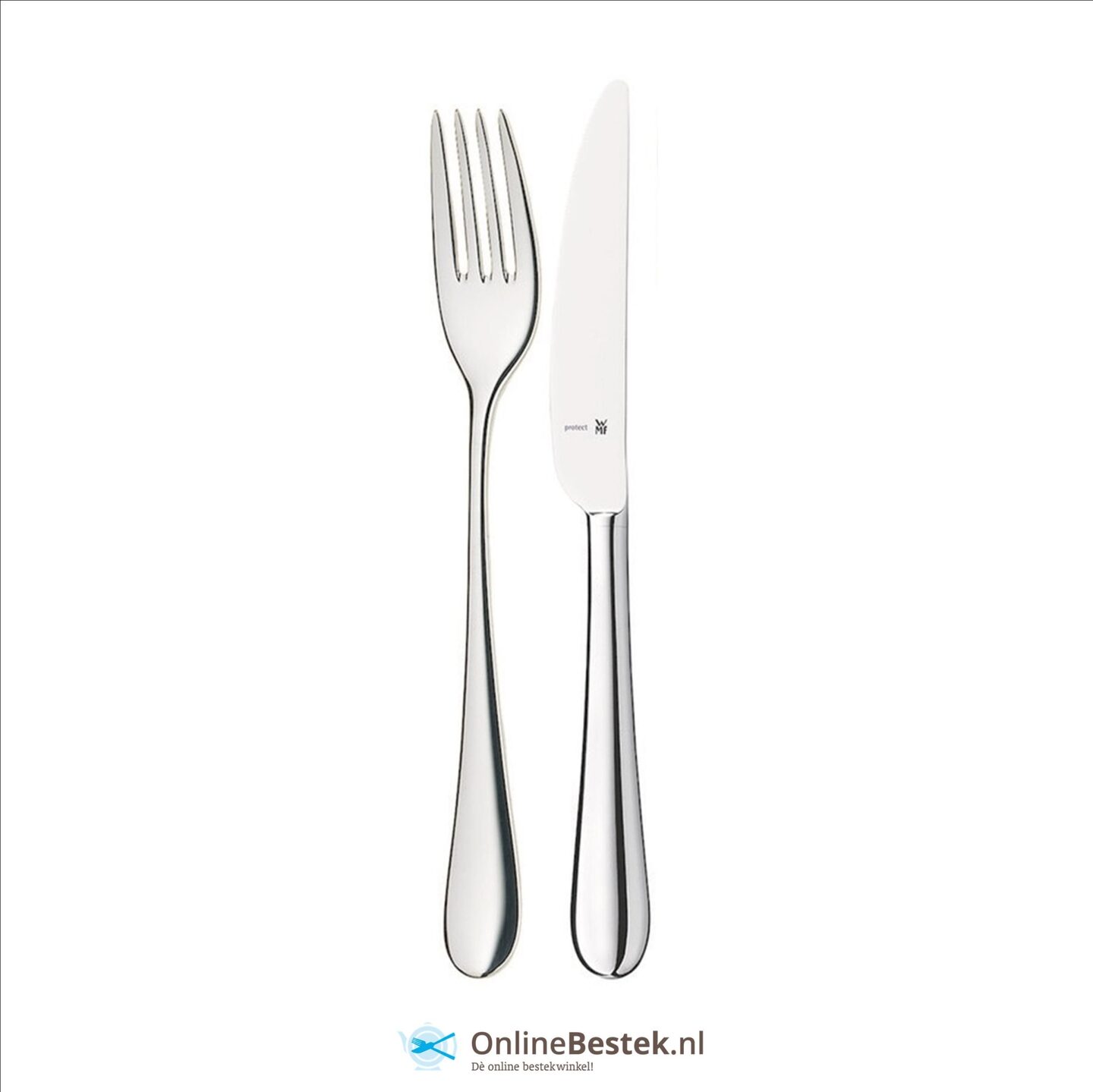 Cromargan protect® – een schitterende innovatie, internationaal gepatenteerd en alleen van WMF. Bij normale bestekken waren er bij het testen al na een paar testruns duidelijke sporen en diepe krassen te zien. Het oppervlak van bestekken van Cromargan protect® bleef echter ook bij lange test runs bijna onberispelijk. De voordelen van Cromargan protect: Krasbestendig - extreem bestand tegen alle soorten gebruikssporen - gepolijste oppervlakken blijven glanzen, matte oppervlakken blijven mat - roestvrij en geschikt voor de vaatwasmachine - internationaal gepatenteerd, alleen bij WMF - alle eigenschappen van het mooie WMF Merit Cromargan protect® gegarandeerd.