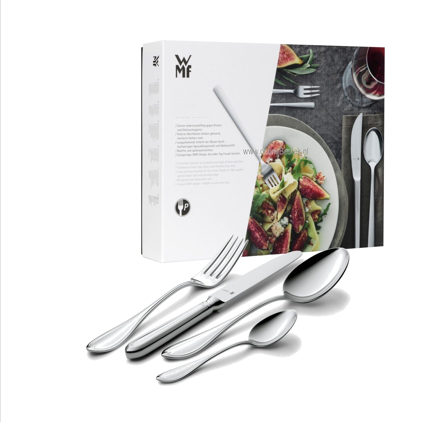 WMF Premiere 66 delig is een bestekset geschikt voor een tafel van 12 personen. Van dit bestek is vormgeving geïnspireerd door klassieke lijnen. De verhoudingen van dit WMF Premiere bestek set zijn ideaal gekozen en liggen perfect in de hand, het bladmotief op de voorkant van het bestek wordt herhaald op de achterkant en is terug te vinden op tot op het kleinste deel van het bestek. Dit maakt de Premiere tot een tijdloze klassieker en getuigt ook nog eens van hoge kwaliteit en de vakmanschap die het Duitse merk WMF in huis heeft.